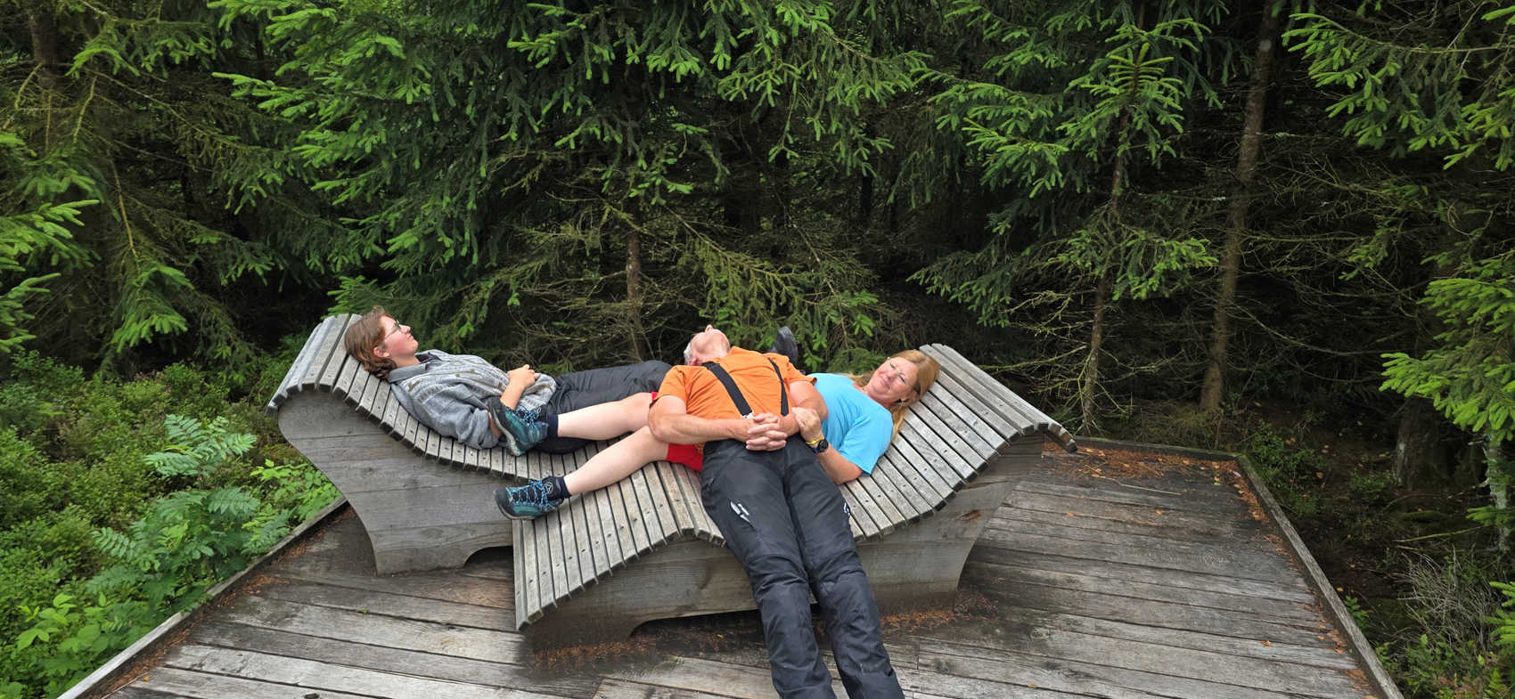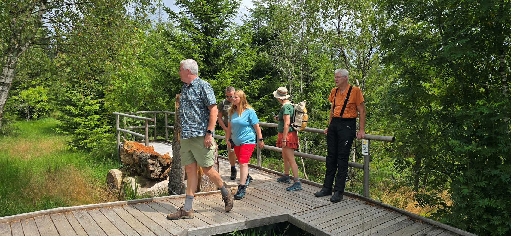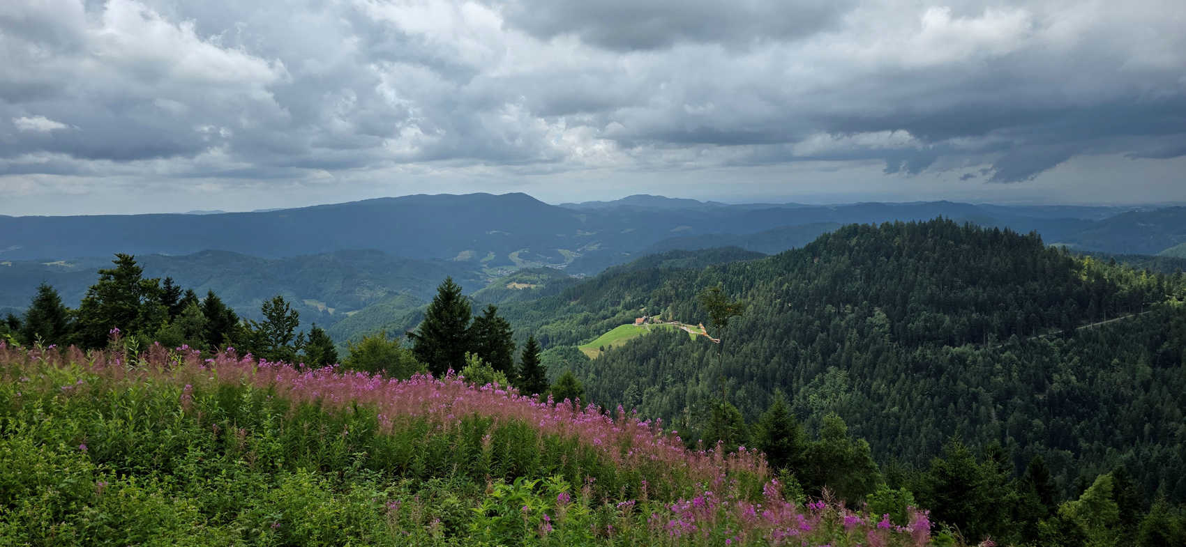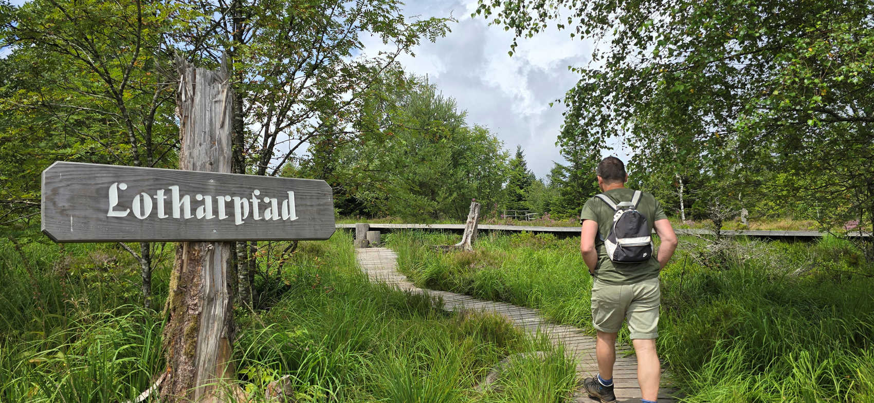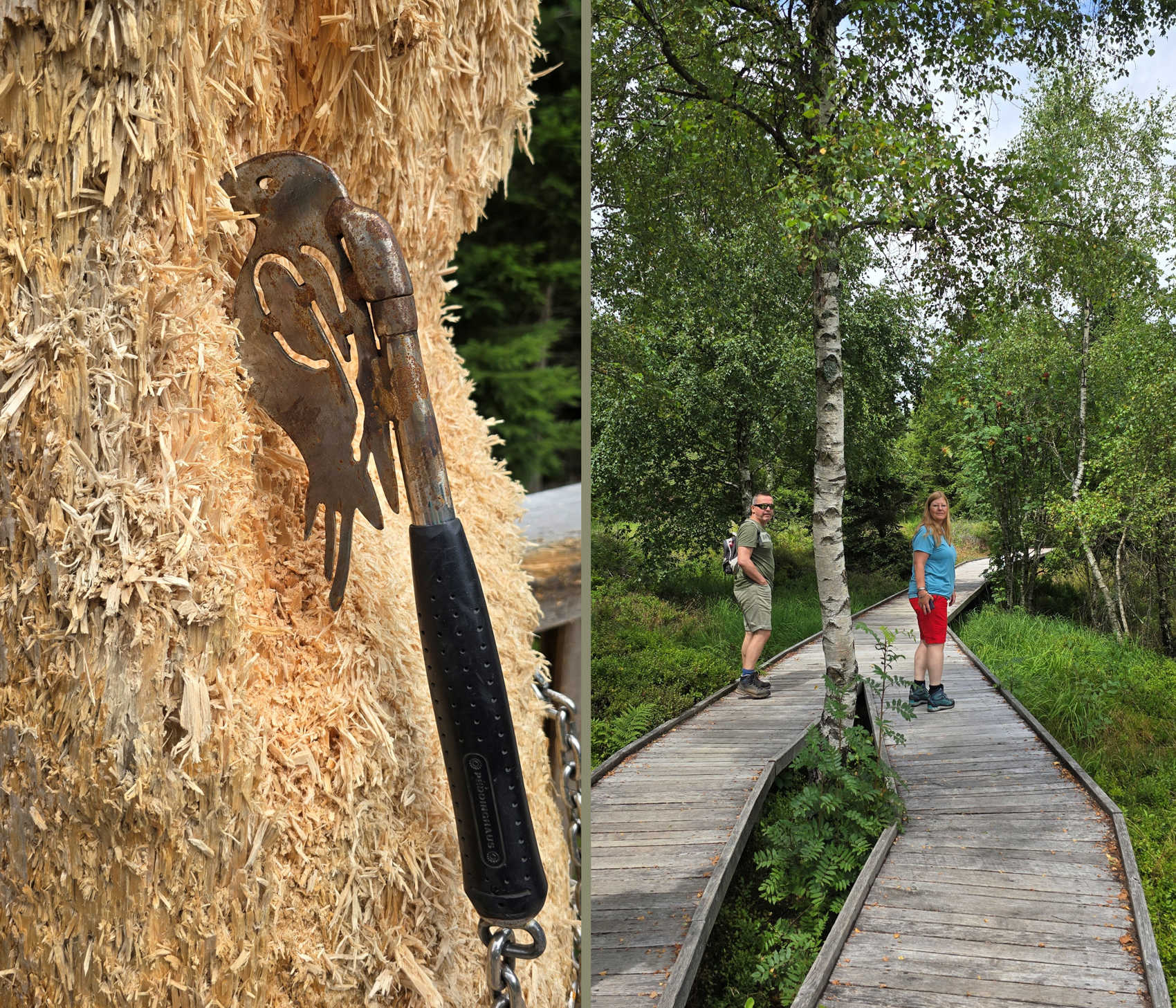 Eerst zijn we naar het Lotharpfad geweest voor een korte wandeling. Het is aan de Hochschwarzwaldstraße. Het is een wandeling van ongeveer een half uur, over vlonders, loopbruggen en trappetjes. In 1999 heeft orkaan Lothar hier huis gehouden, en met deze trail, kun je ervaren hoe de natuur zich hersteld/ontwikkelt zonder menselijke hulp.