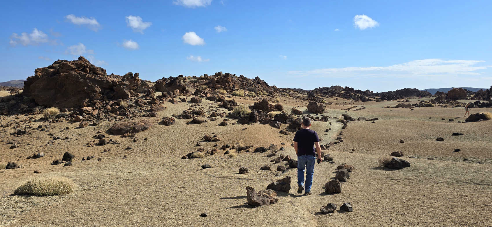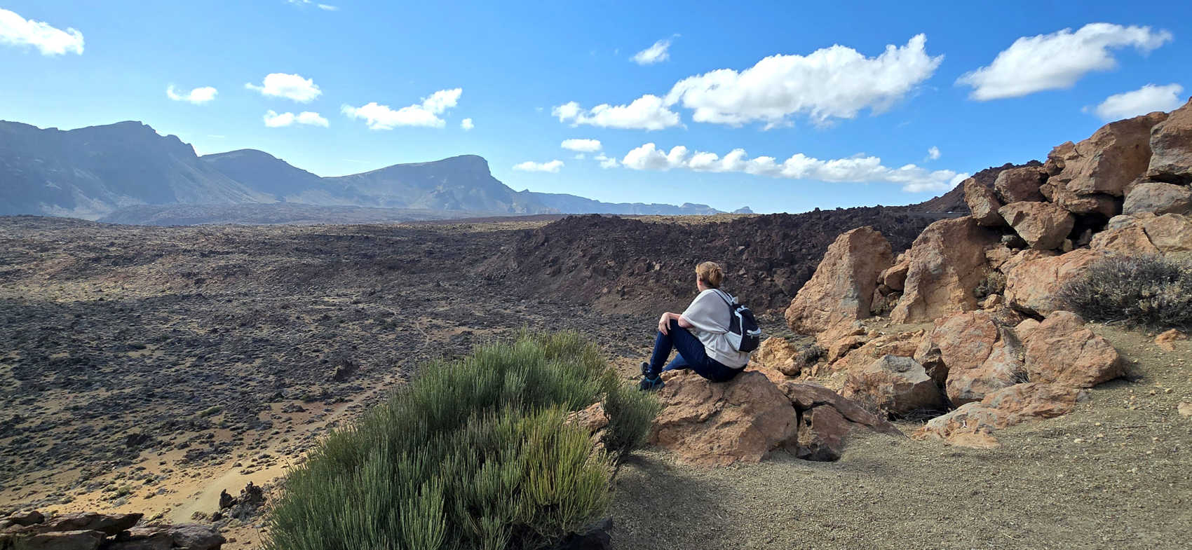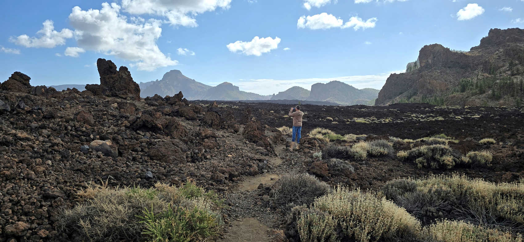 Dus maar weer doorgereden, en de volgende stop gemaakt bij Las narices del Teide. Een mooi gebied van donker lava gesteente. Weer heel anders, dan de andere stops, en gelukkig hier wel weer een mogelijkheid om te parkeren. We zijn hier een klein stukje het gebied ingelopen, maar we mochten niet verder, omdat het gebied was afgesloten, i.v.m. de moeflon jacht. Dus weer omgekeerd.....en door!
