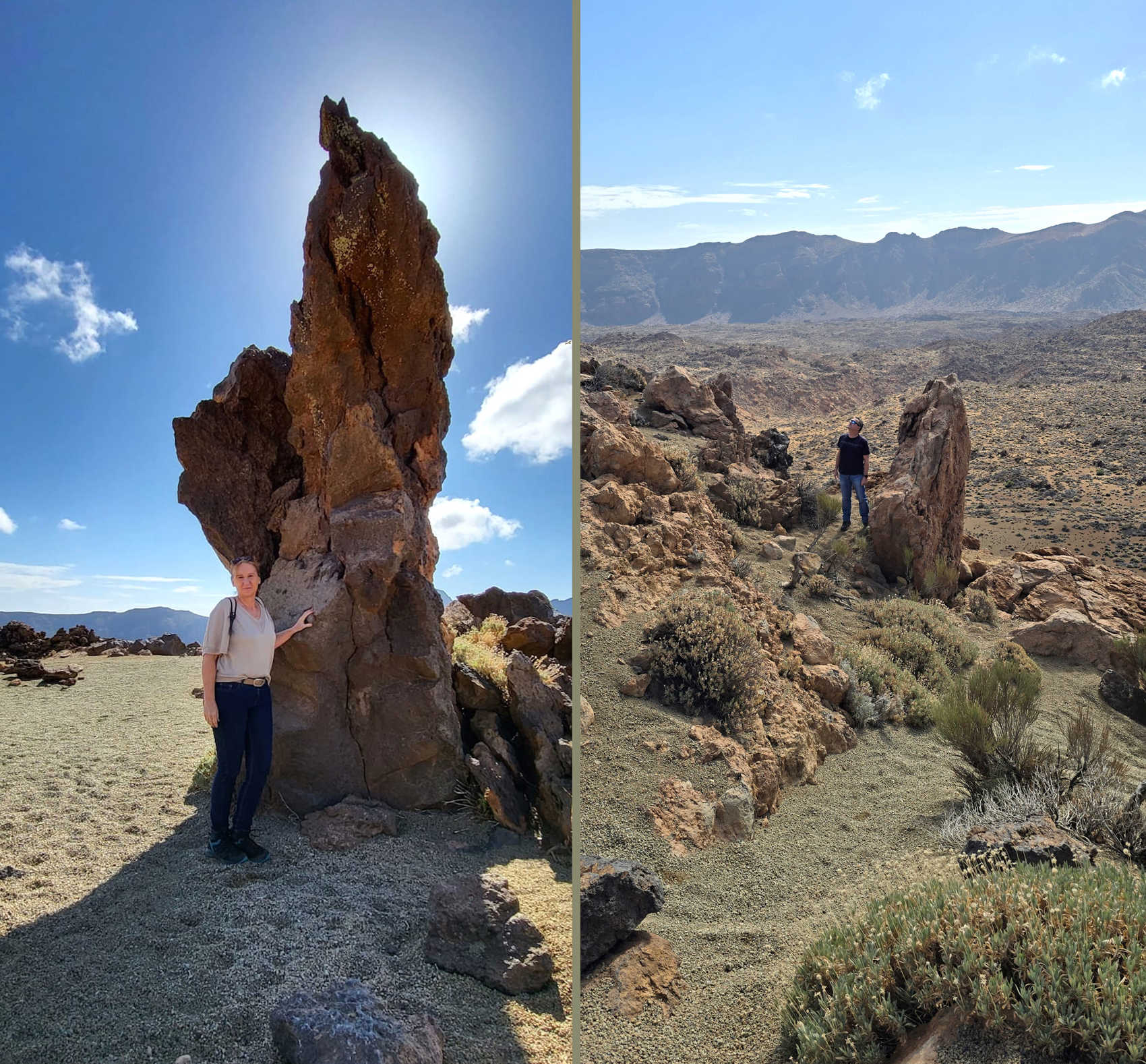 Daarna doorgereden richting Roques de Garcia, en onderweg hadden we een beetje het gevoel dat we in Monument valley waren. Dat ruige vlakke landschap met die geweldig grote rotsen. Bij Roques de Garcia waren alle parkeerplaatsen mutje vol, en ik heb vanuit de auto nog een foto kunnen maken. Echt jammer dat we hier niet konden parkeren, want we hadden er graag rond gewandeld. Misschien later deze week...wie weet!