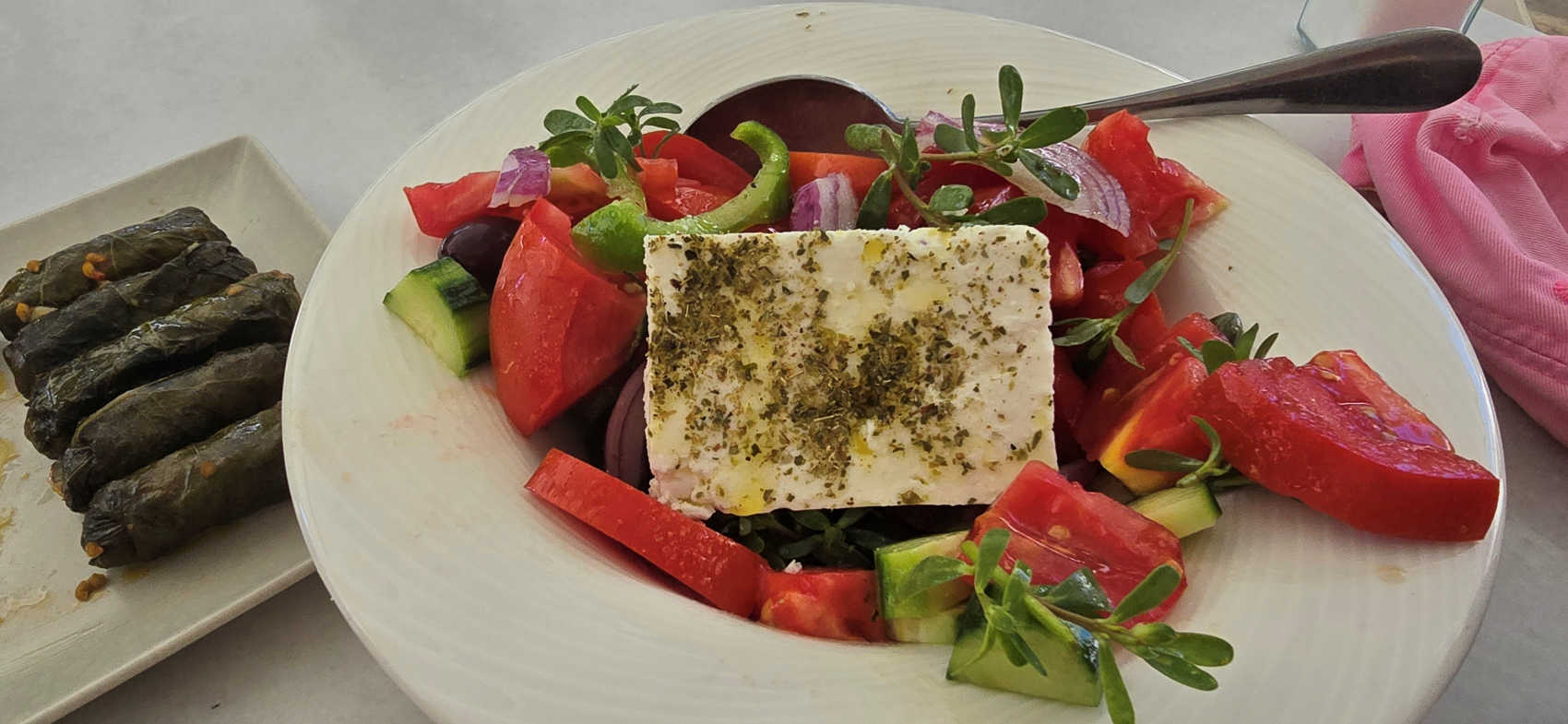 Bij de parkeerplaats is een restaurantje, waar we heerlijk konden uitpuffen en genieten van een lekkere Griekse salade en dolmades.