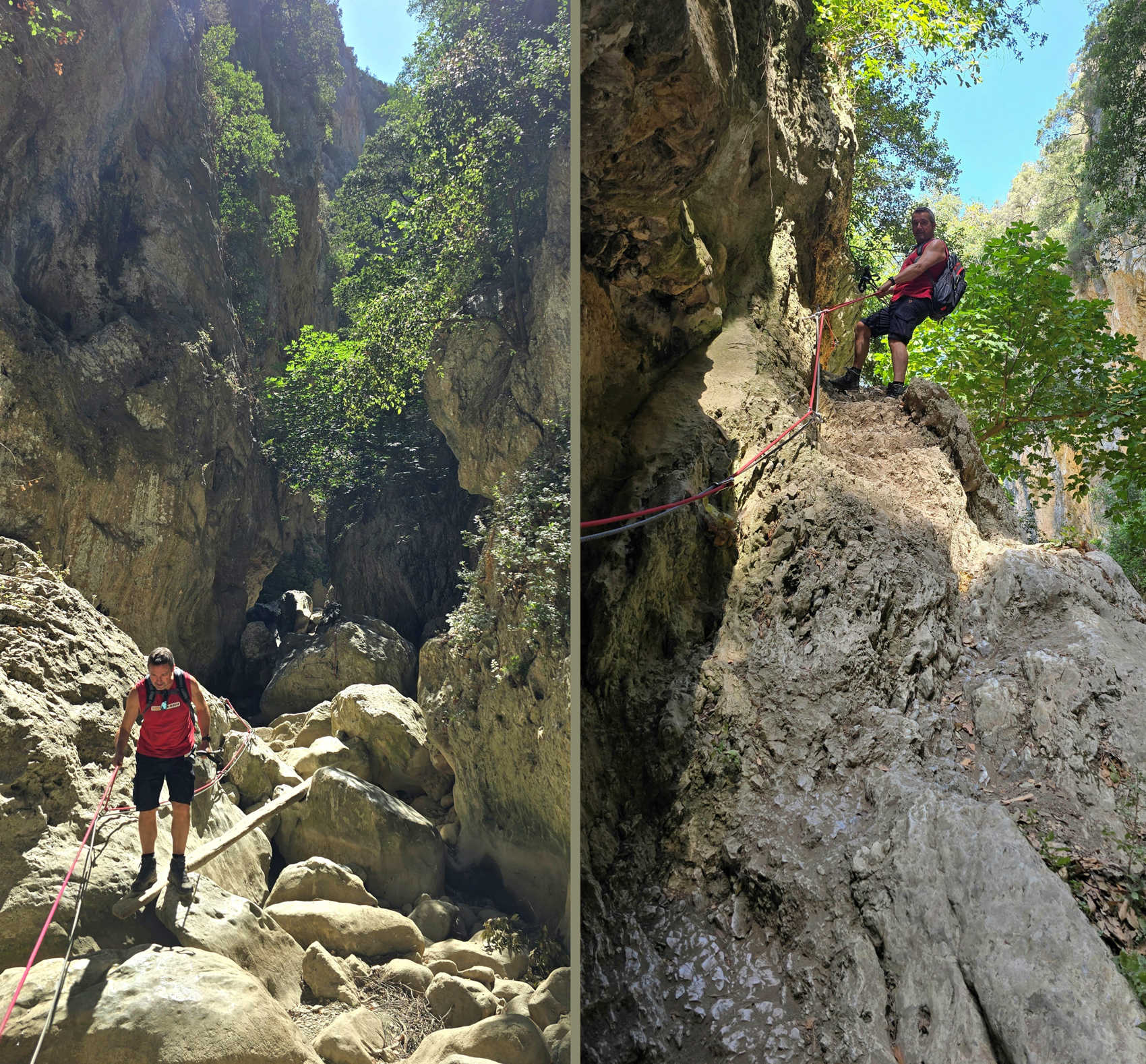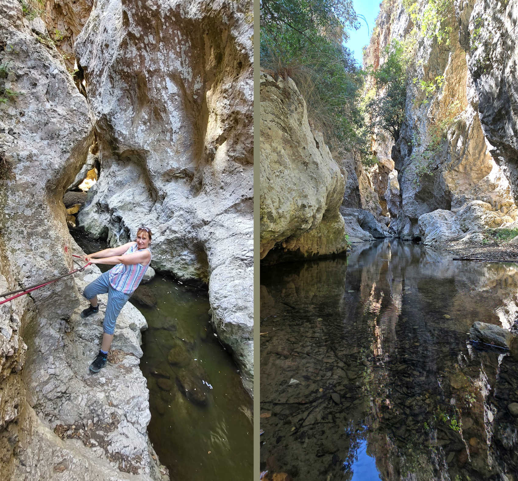 Het was een uurtje rijden vanaf ons appartement, de bergen (binnenland) in. De kloofwandeling is ongeveer 3 uur lopen; 1,5 uur heen, en dezelfde route weer terug. Uit informatie op internet wisten we dat het een klim- en klauterroute zou zijn, maar daar hou ik wel van! Dus....wandelschoenen aan, en gaan!