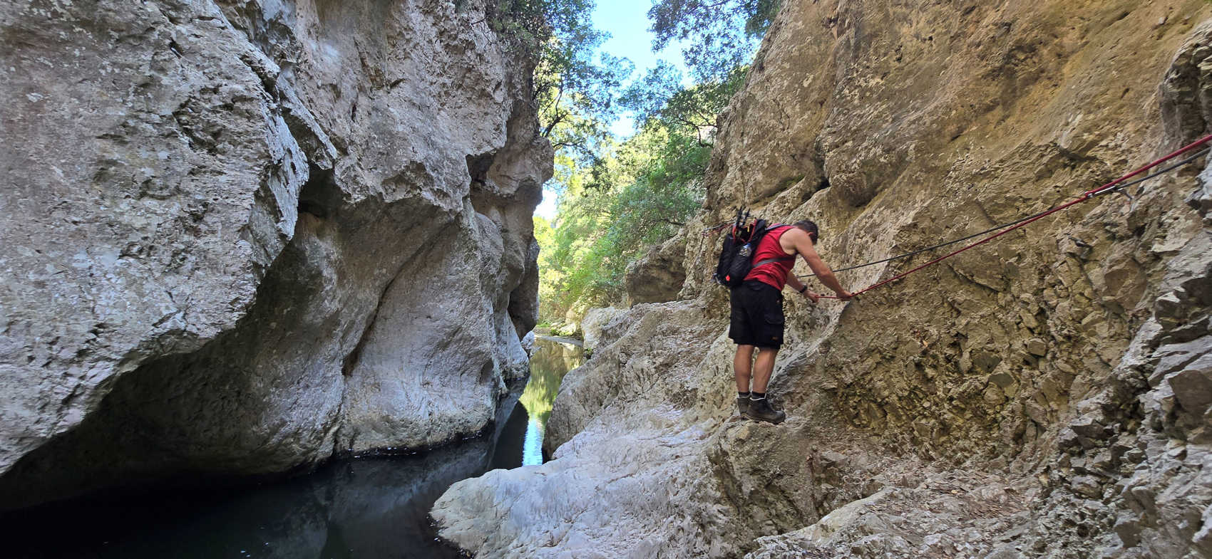 Hieronder, voor mijn gevoel, het echte begin van de kloof, want hier begon het echte klim- en klauterwerk.