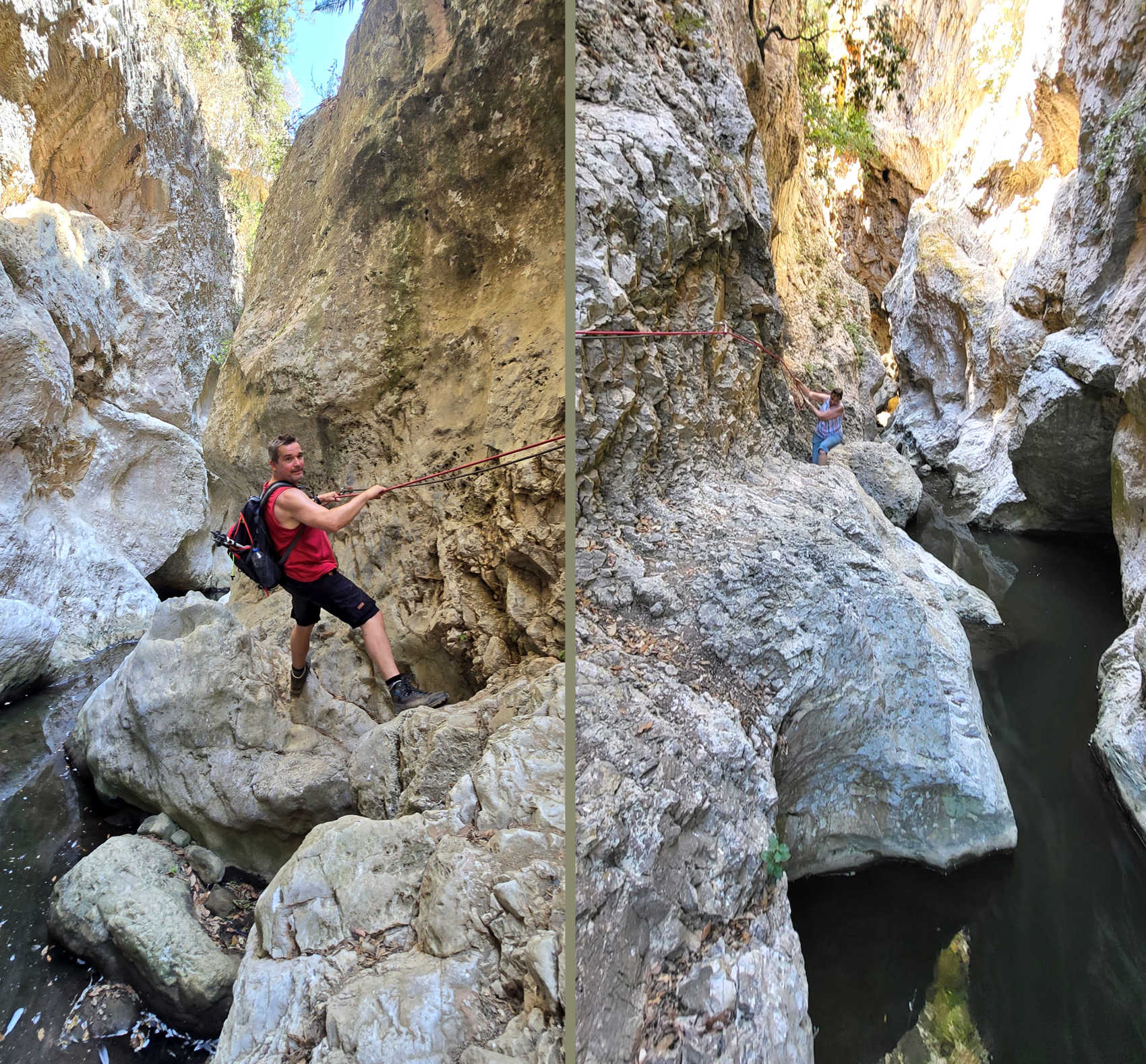 Langs de route hingen veel touwen, waar je steun aan had tijdens het afdalen (en op de terugweg het klimmen).
