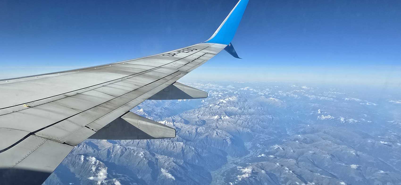 ![]() Onderweg hadden we prachtig weer, dus hadden we ook fantastische uitzichten. Hier vliegen we boven de alpen, waar hier en daar zelfs nog sneeuw op de hoogste toppen zichtbaar was. Hier begint al het echte "vakantie genieten". |