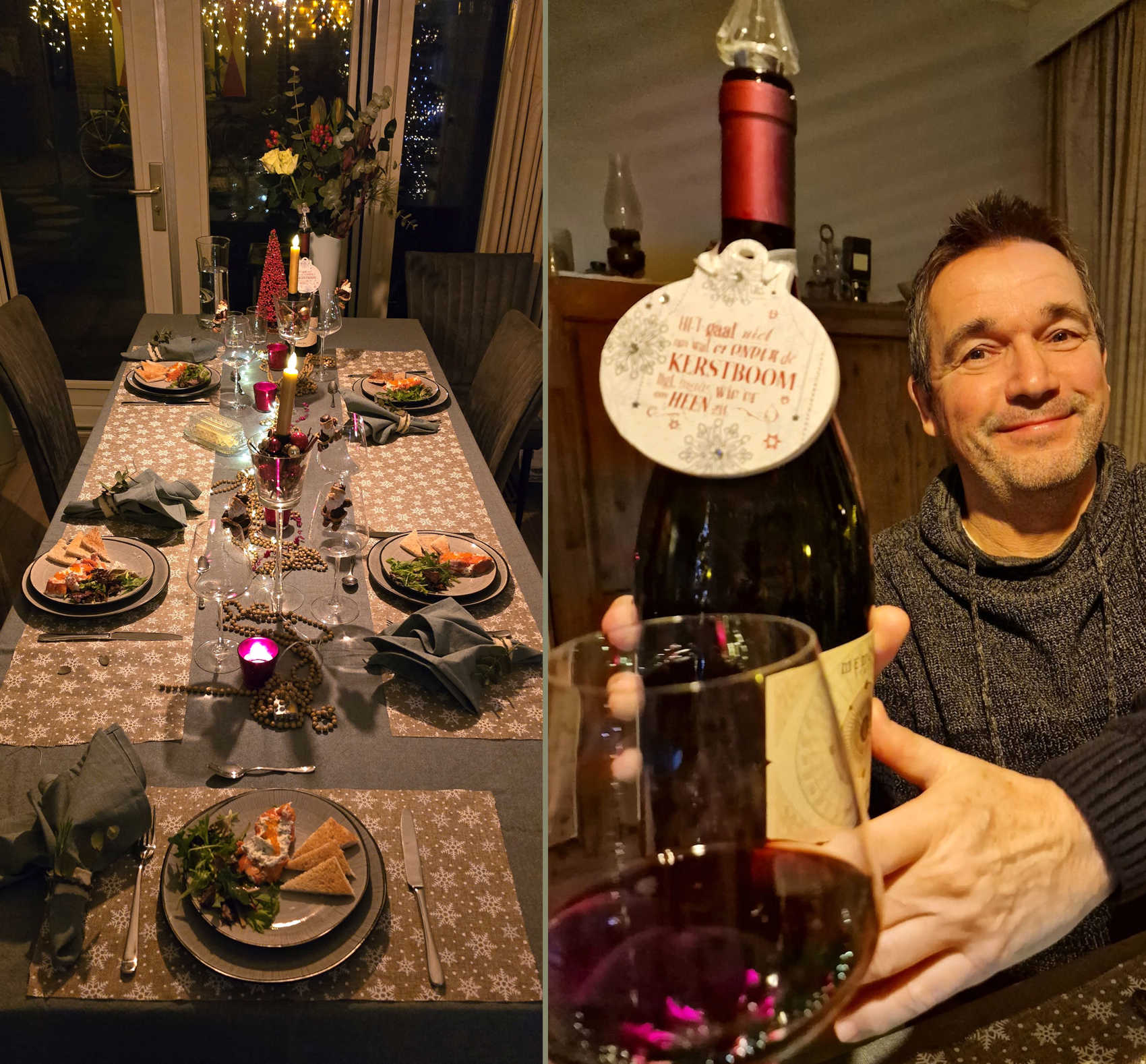De mannen kregen hun gepersonaliseerde fles whisky. Ook hebben we nog een groepsfoto gemaakt voor de kerstboom. Hoort er ook een beetje bij ieder jaar.