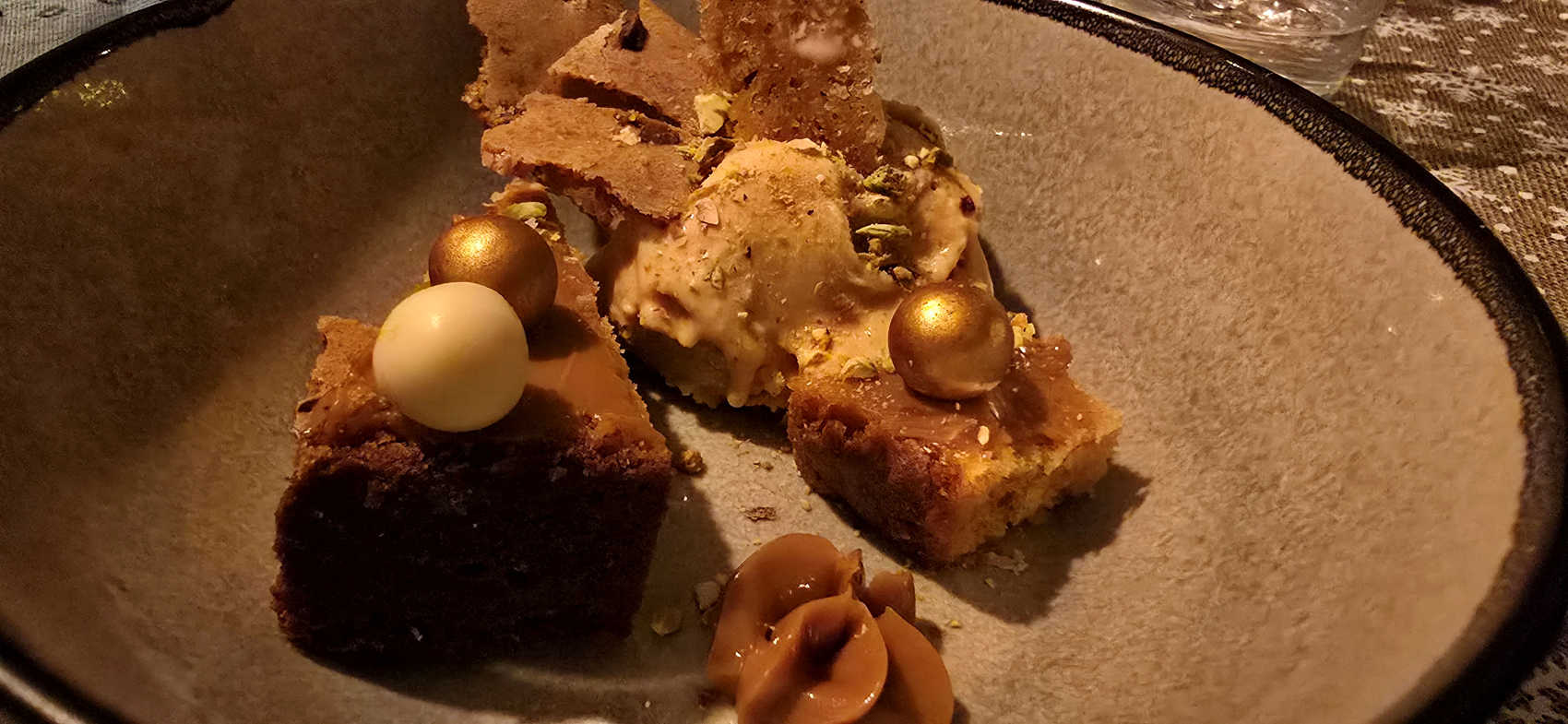 Het hoofdgerecht was lamsvlees, met aardappel en boontjes, en het dessert was een soort grand dessert met verschillende dingen; o.a. een toffee creme, ijs met pistache nootjes en kletskopjes, en cake met caramel. Alles was verrukkelijk! Het was, ondanks dat ik er vooraf wel een beetje tegenop zag vanwege de leegte zonder pap, een topdag. Ik heb echt genoten!