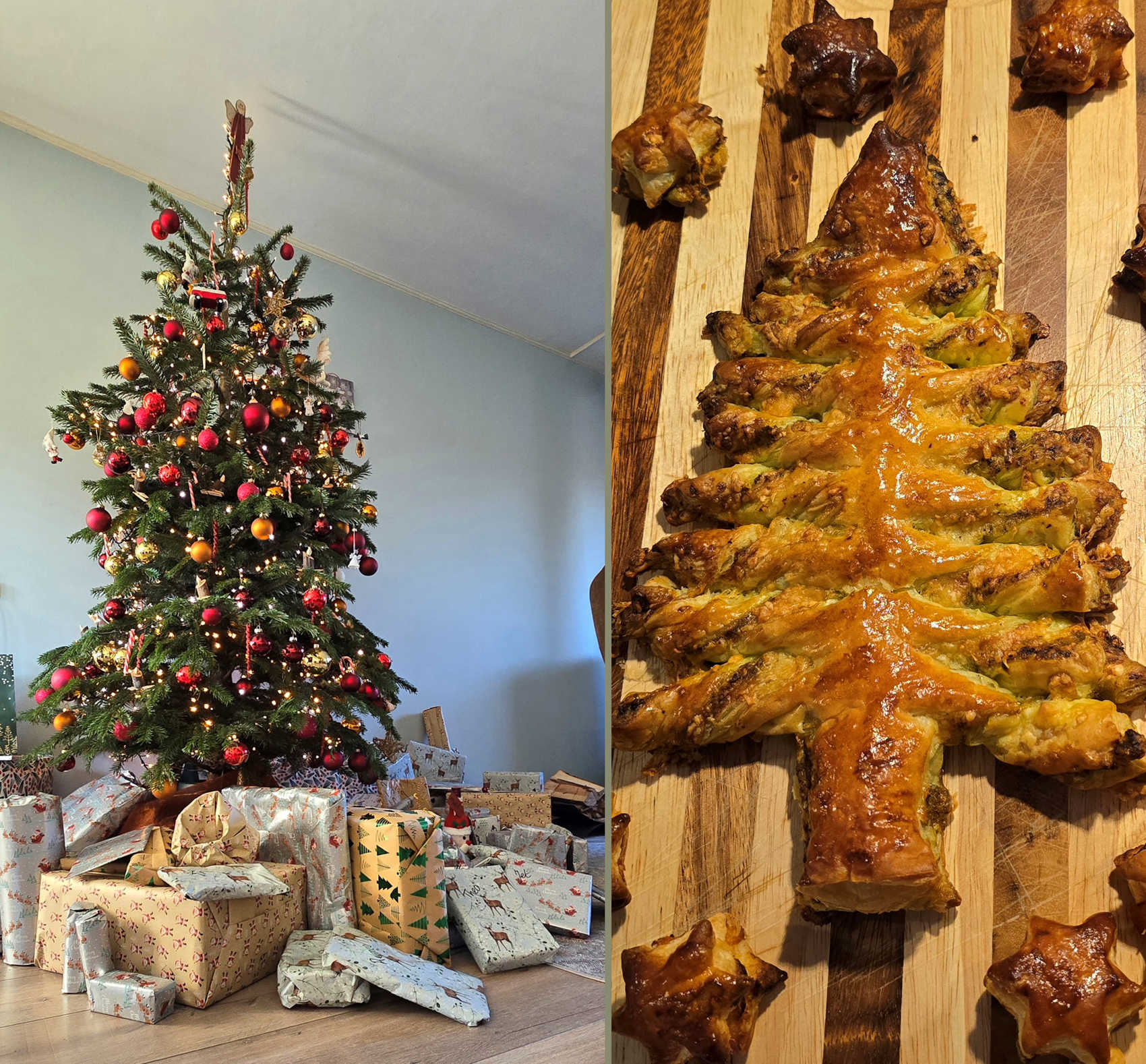 Eerste kerstdag naar Apeldoorn gereden, en kerst gevierd bij broer en schoonzus. Zij hadden de echte kerstboom verzorgd, ik de eetbare kerstboom van bladerdeeg met pesto en kaas. Deze heb ik eerste kerstdag nog gebakken voor we weg gingen.
