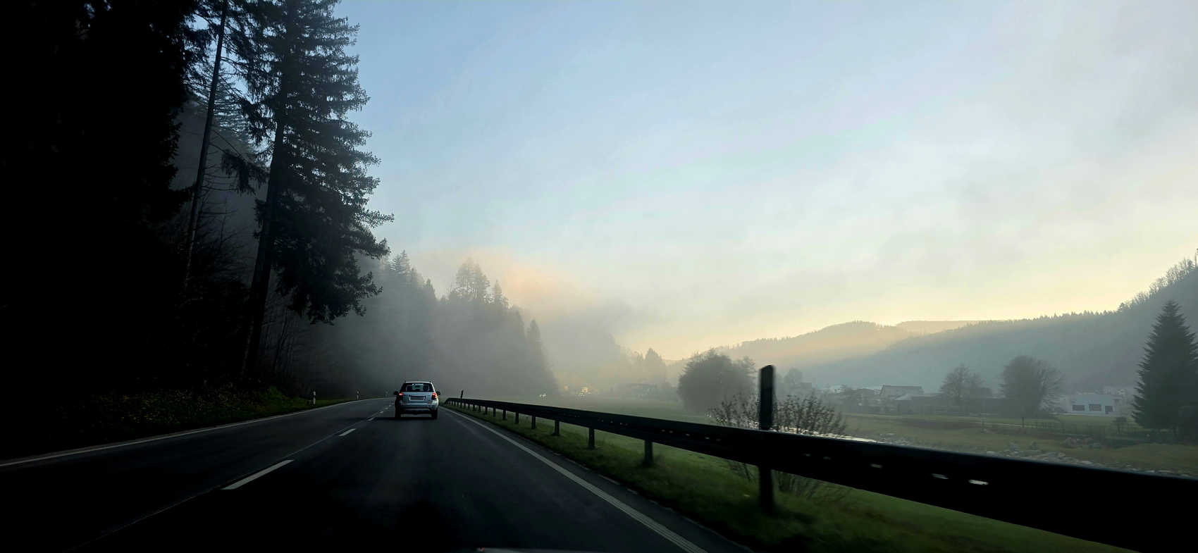 En afgelopen zondag gingen we dus weer naar huis. De hele weg goed rij-weer gehad, alleen in de Eifel was het even erg mistig. En het was ook drukker op de weg, dan op de heenreis, maar...geen file gehad en toch goed door kunnen rijden. Ook toen we van de snelweg afgingen en ons dal inreden, hing er mist. Maar vanaf Oppenau scheen de zon, en ook in Löcherberg was het zonnig, al was de zon al aan het ondergaan.