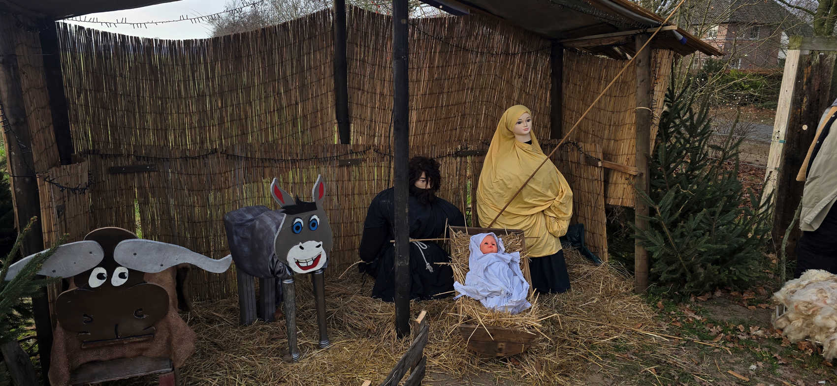 Op 24 december hebben Matt en ik een heerlijke wandeling gemaakt met Yuna. Het was koud, maar het zonnetje maakte veel goed...ik vond het heerlijk! Onderweg ook nog een kerststal gezien, alleen nog zonder kindeke Jesus en dus een lege kribbe .....was dit bewust, of was het kindeke misschien door iemand meegenomen. Een rede om er na/tijdens de kerst nog een keer langs te lopen!