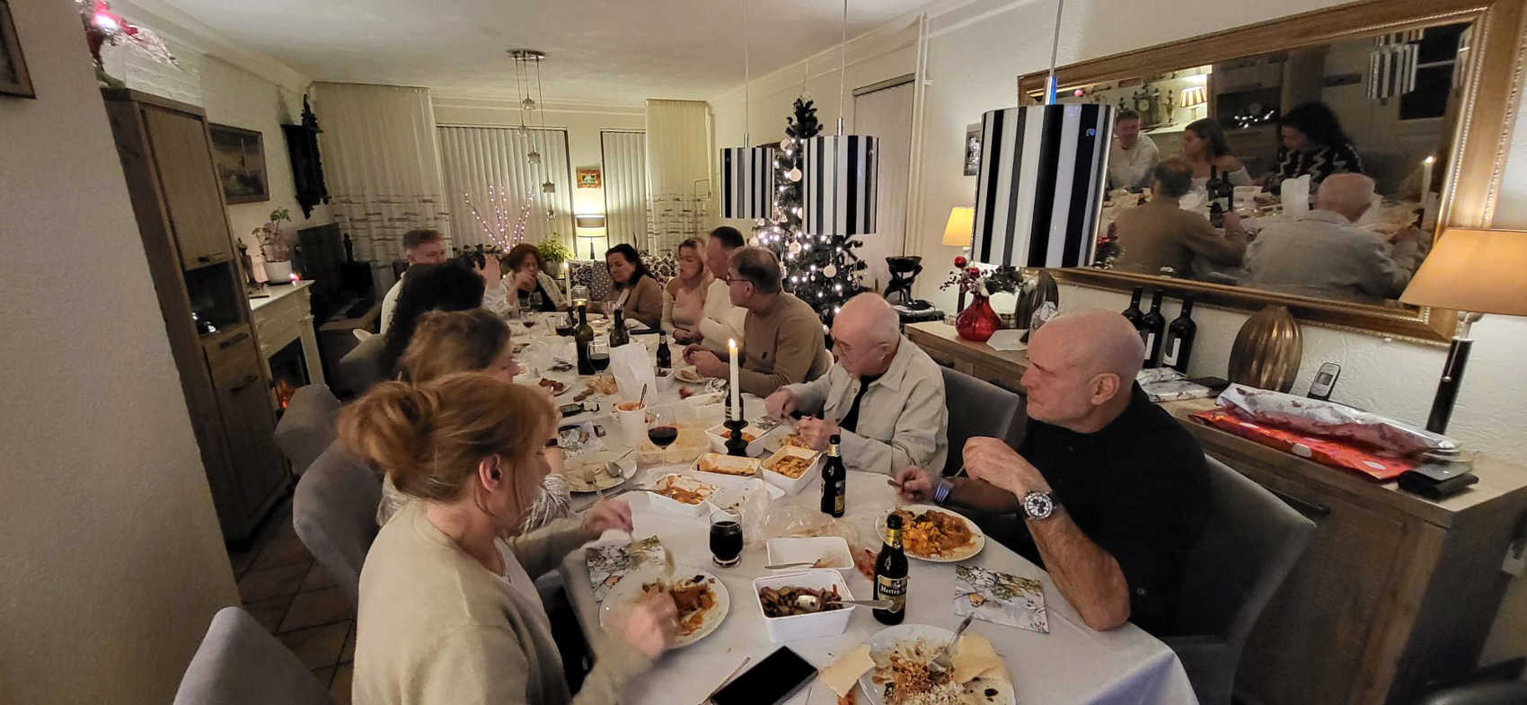 Kerstavond is altijd met mijn schoonfamilie, en dit jaar bij mijn schoonouders thuis. Voorheen was het vaak gourmetten, maar daar hadden mijn schoonouders dit jaar geen zin in, en dus....hebben we het heel makkelijk gehouden, en gewoon chinees gehaald. En het was heerlijk, hoor. In Duitsland kennen we dit niet, we kunnen wel wokschotels met rijst en eend of kip bestellen, maar niet de foeh yun hai, tjap tjoy, en babi pangang (hoe je het allemaal schrijft.....geen idee. hihi). Dus extra van genoten, en zoals vaak bij dit soort eten, veel te veel gegeten. Hihi! Maar een super gezellige avond gehad.