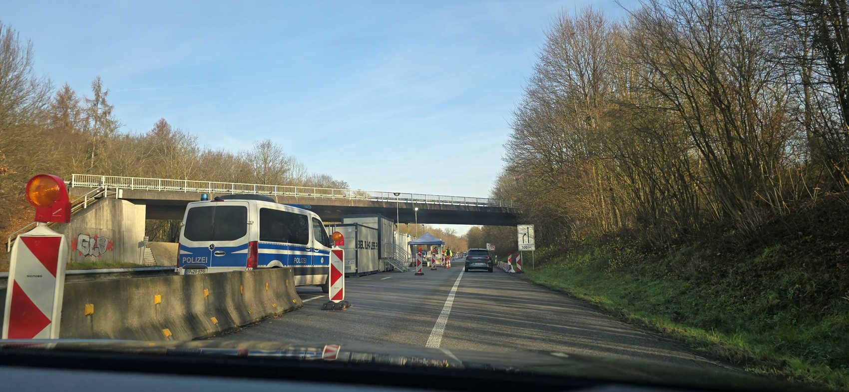 Wij rijden altijd een stukje door Frankrijk, en hier hadden we een politie controle ( een fuik), toen we weer bij de grens Duitsland binnen reden.