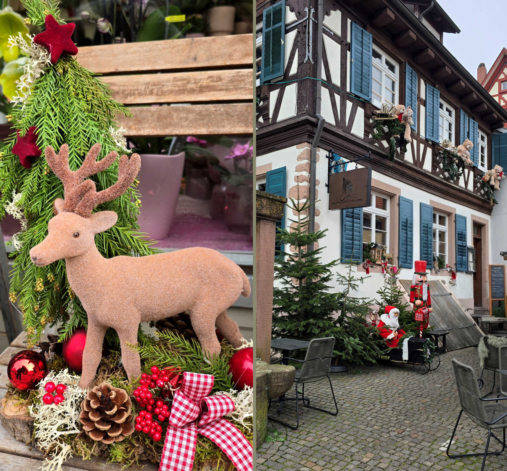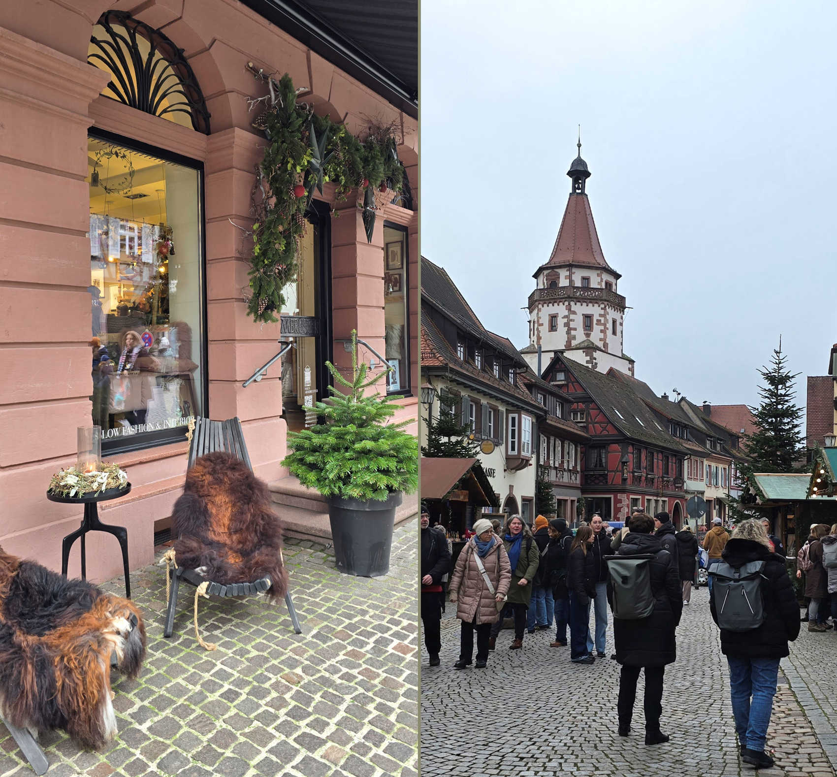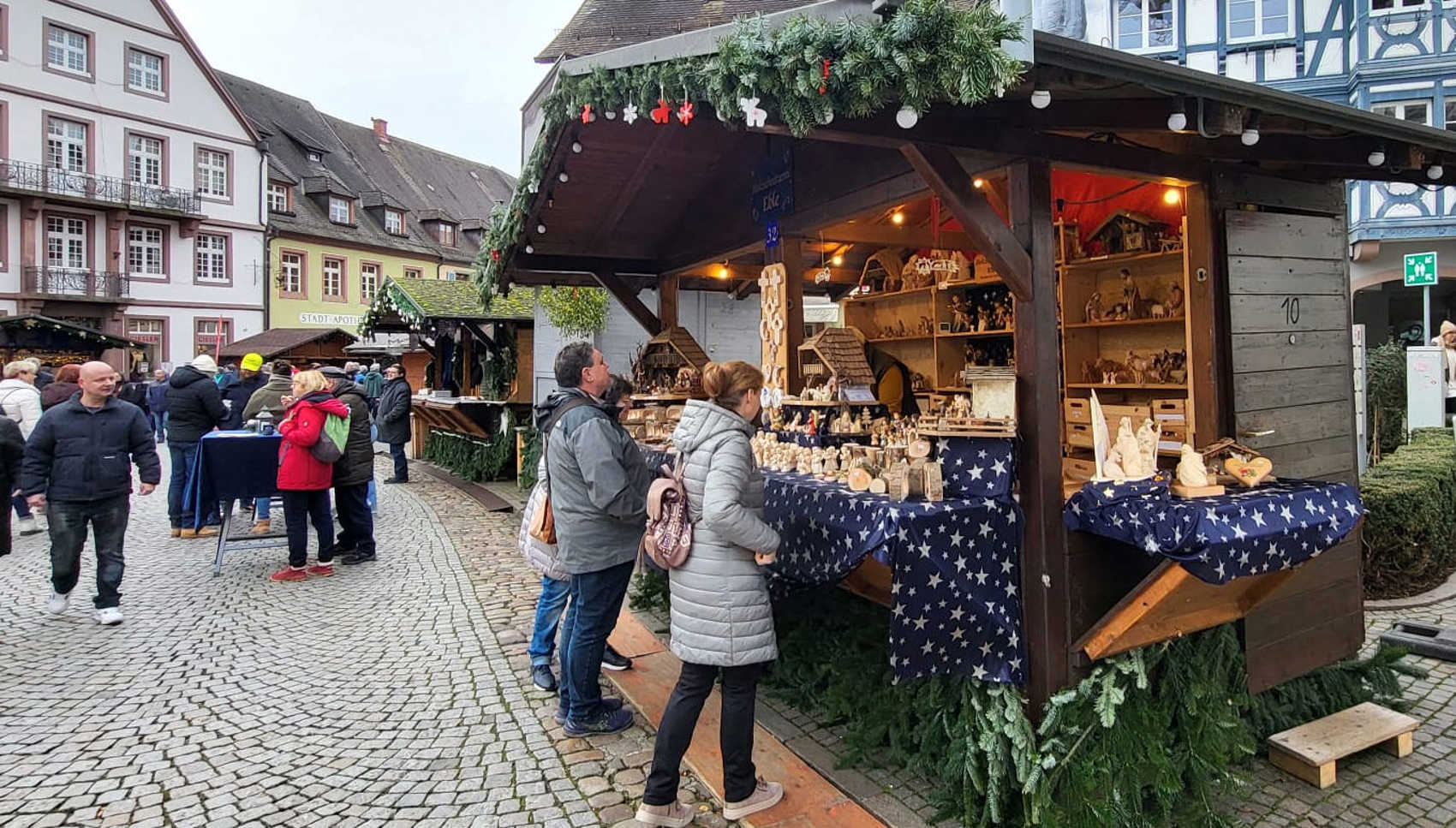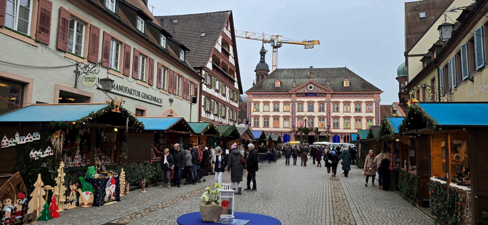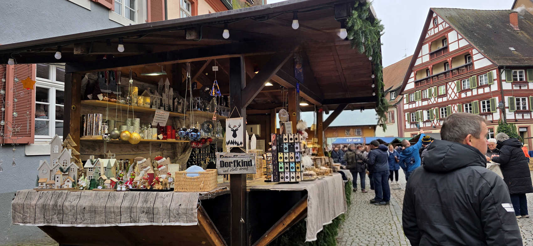Maar eenmaal in Gengenbach...was het weer grauw en grijs. Gelukkig is Gengenbach een heel sfeervol stadje, met de oude huizen en winkelpanden. En de kerstkraampjes maakten het natuurlijk nog sfeervoller en gezelliger. Al viel de drukte mee....ik had het drukker verwacht.