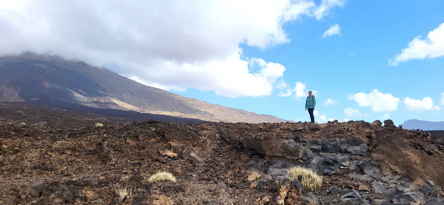 Dus maar weer doorgereden, en de volgende stop gemaakt bij Las narices del Teide. Een mooi gebied van donker lava gesteente. Weer heel anders, dan de andere stops, en gelukkig hier wel weer een mogelijkheid om te parkeren. We zijn hier een klein stukje het gebied ingelopen, maar we mochten niet verder, omdat het gebied was afgesloten, i.v.m. de moeflon jacht. Dus weer omgekeerd.....en door!